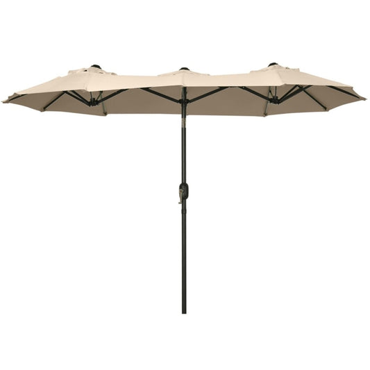 Double Sided Outdoor Market Umbrella with Crank Extra Large Patio Garden Pool Backyard Beach Umbrella Beige
